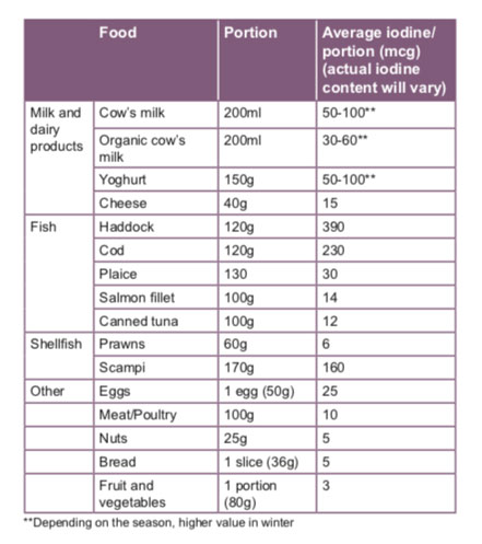 Iodised salt is another source, but it isn’t readily available in the UK, and it’s not advisable to increase salt intake, for other health risks such as high blood pressure.