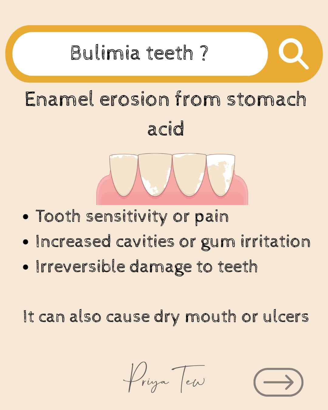 Another area of bulimia face deeply affected by purging is the teeth and mouth. Stomach acid is highly corrosive and can gradually wear down tooth enamel, leaving teeth more sensitive, brittle, and prone to cavities. Because enamel cannot regenerate, this damage is largely irreversible. Many people also notice dry mouth, increased sensitivity, or small mouth ulcers without realising these symptoms are linked to purging.