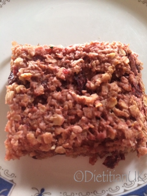 I love it because 1. It has ginger in. 2 It isn’t too sweet 3. It takes 10 minutes to knock up and 4. It is flapjack. Miss K loves it’s because is is pink. The J-boy loves it because it is food.